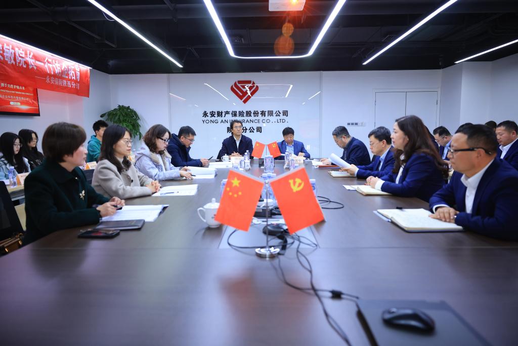 为深入落实学校“用人单位大走访 全员联动促就业”专项行动要求,3月7日下午,学院院长宋敏、党委副书记杨冬一行赴永安财产保险股份有限公司陕西分公司开展访企拓岗。金融系主任周晶、保险专业负责人及实践教学秘书等陪同走访,学院正在企业开展毕业实习的十多位同学参会。